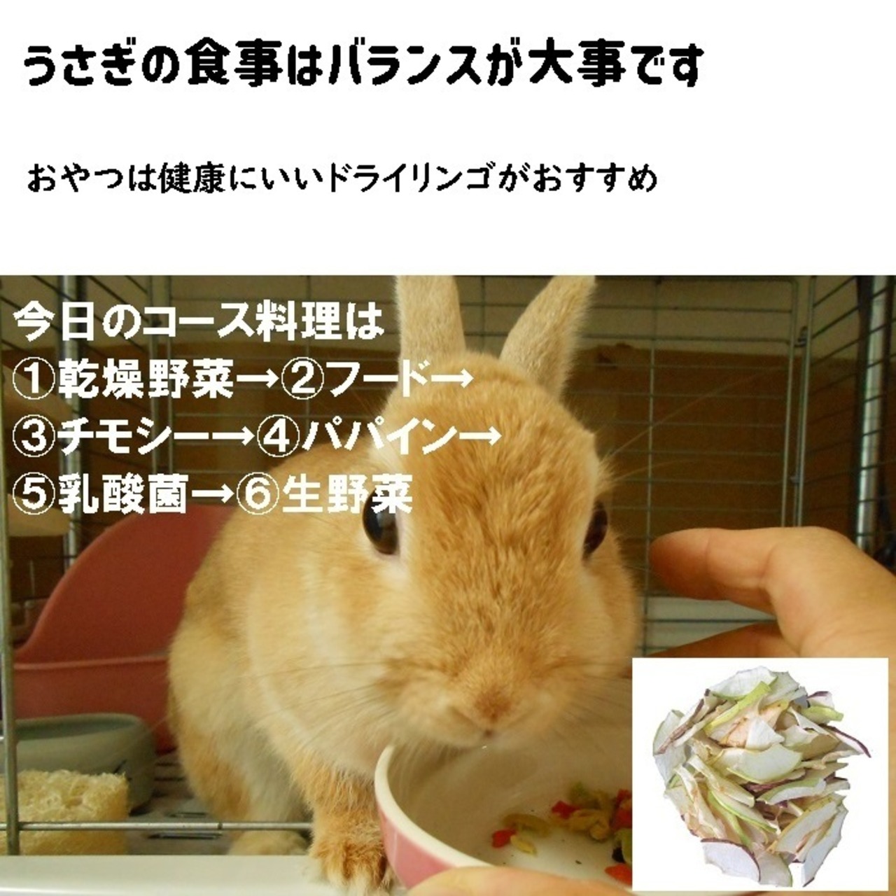 うさぎはみんな大好きりんごチップス。