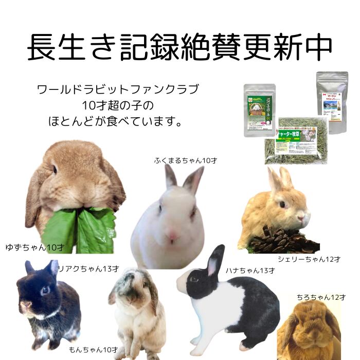 10才以上長生きしているうさぎの多くはチャーター牧草をたくさん食べています。(WRFC比較調査より)