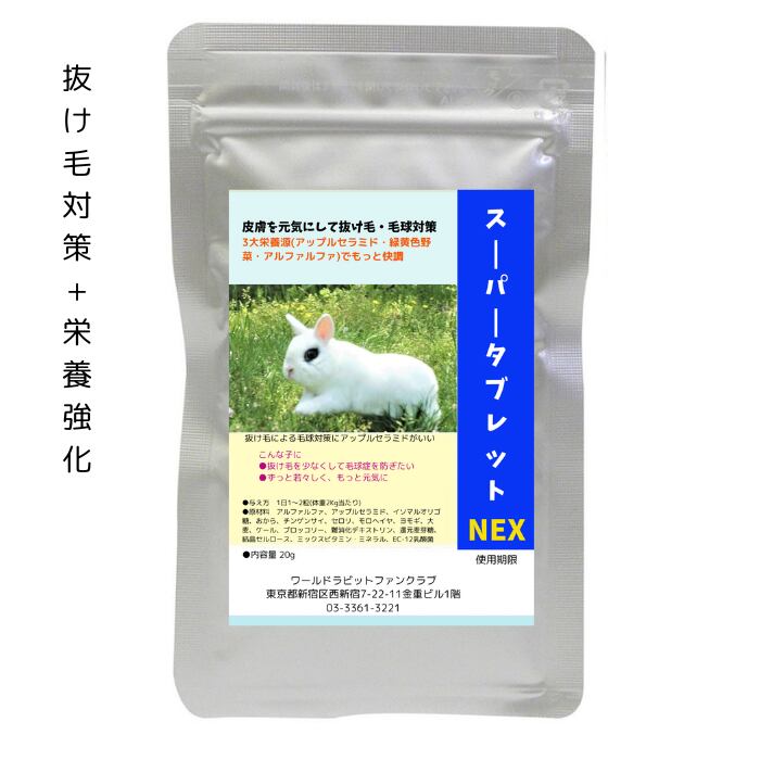 うさぎファンクラブ スーパータブレットNEX 20g 抜け毛・毛球予防サプリメント アップルセラミド配合 うさぎの皮膚おなか元気サプリメント