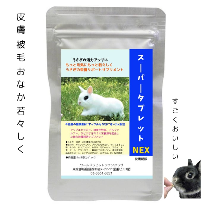 うさぎファンクラブ アップルセラミド配合 うさぎの皮膚おなか元気サプリメント スーパータブレットNEX 4g お試しパック 抜け毛・毛球予防