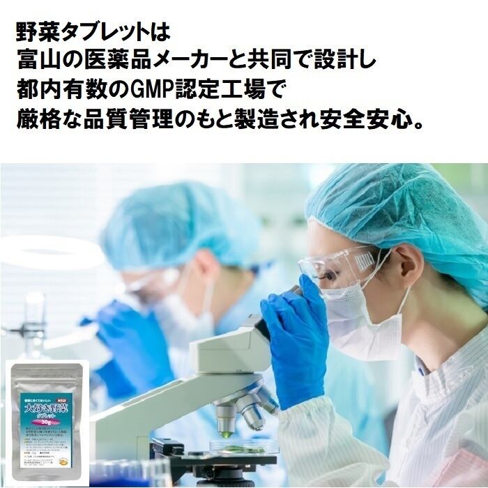 野菜タブレットは生野菜の1/20以下の量で10倍の栄養が摂取できる優れもの。
