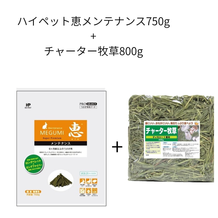ハイペット 恵 メンテナンス750g + チャーター牧草(チモシー1番刈)800g セット