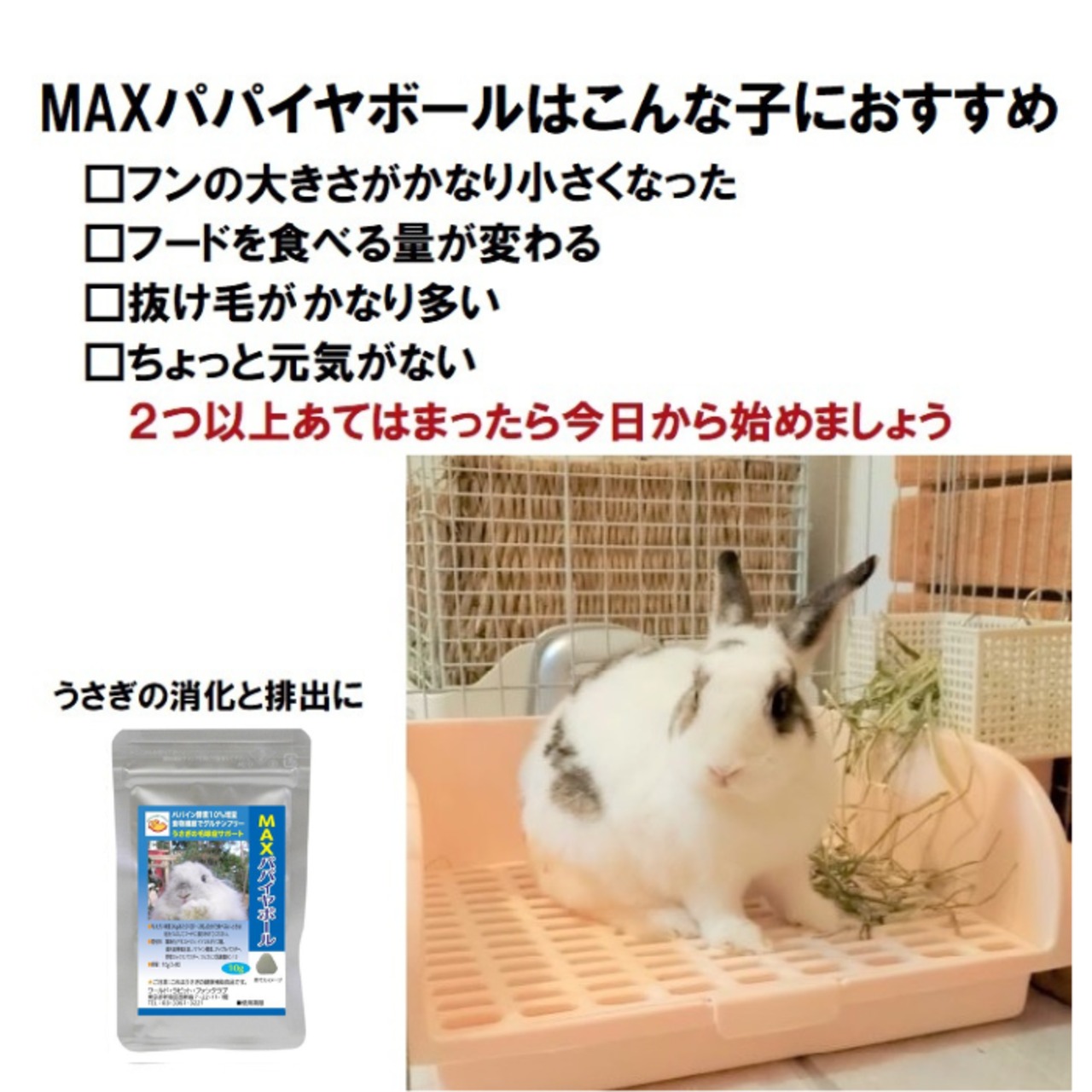 【うさぎの健康補助食品(サプリメント)は病院に通う回数を減らすことができるかもしれません】