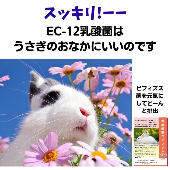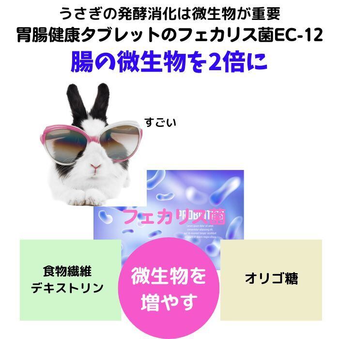 胃腸健康タブレットに配合されたEC-12フェカリス乳酸菌はうさぎの腸内微生物を約2倍にするそうです。